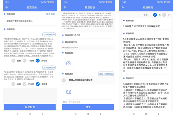 以道路运输领域系列安全生产监督检查指导手册为基础开发相关功能,统一检查内容,统一执法标准 ,规范执法人员的自由裁量权。